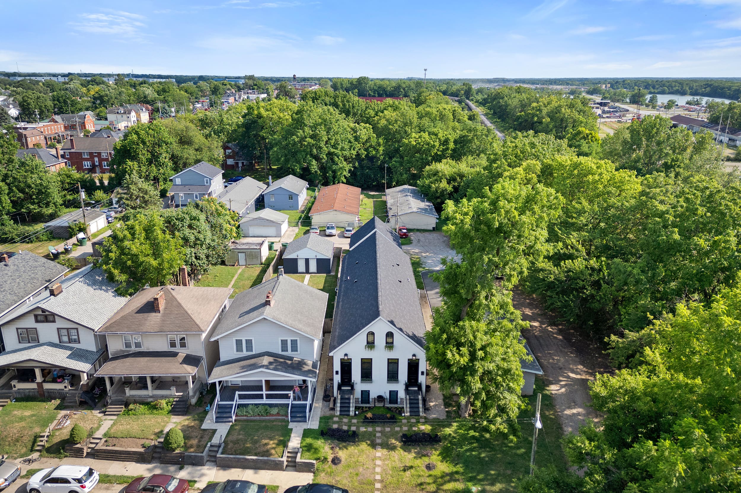 Brenda reflects on the beginning of the project, “Guy had come to me with sketches and a pretty clear vision of what he wanted”. After visiting the site, they headed down the block to Double D’s to review his drawings and began planning. The contractor had the construction know-how but needed guidance on permitting processes. She recalls that, “one of the first steps was to educate the client about zoning and building codes, and how those would dictate the building width, length, and parking configuration.” Brenda handled several zoning variances throughout the process as they were compacting a side-by-side duplex on a narrow lot. She expertly navigated the South Side Area Commission review committee to ensure the building met City requirements while meeting the client’s vision.