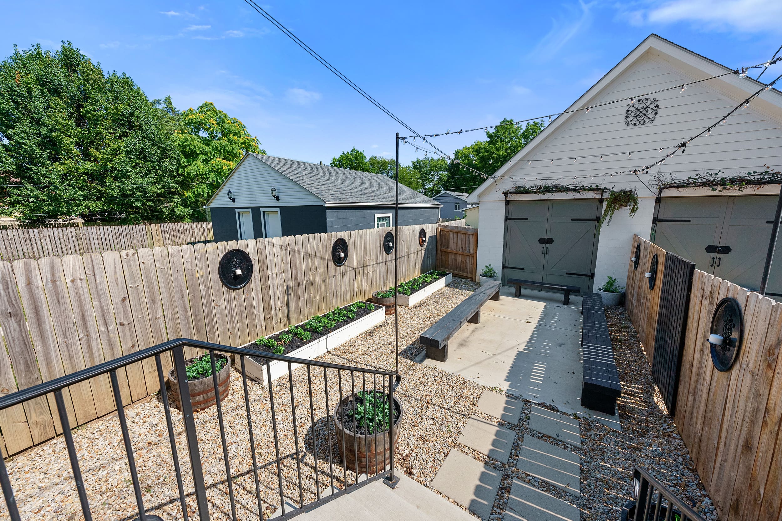 One specific instance of this was with the garage configuration. With a need for ample parking, he originally sketched out an attached unit for the property, creating a long flowing building. Restrictions from the city required a detached alley-facing structure. Undeterred by the city ordinances, Brenda creatively designed a pull-through garage where the extra space functions as a patio when not in use.